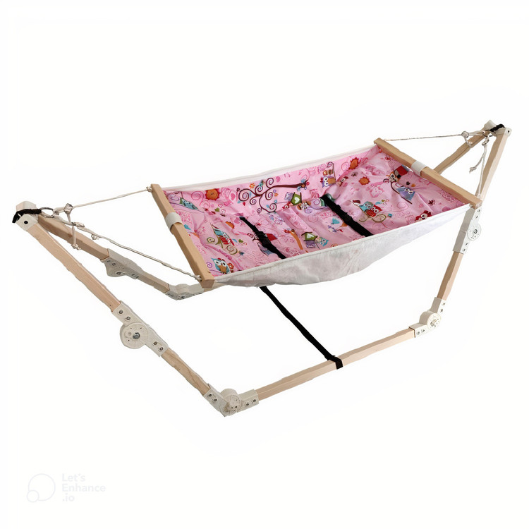 جنس بدنه گهواره از چوب روس درجه یک و دارای دو چرخدنده در مفصل برای سهولت در نصب و جمع کردن گهواره .مفاصل کاملا فلزی با روکش ای بی اس درجه یک می باشد