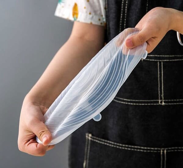 درپوش محافظ غذا از جنس رپوش های سیلیکونی با مقاوت حرارتی و قابلیت انعطاف پذیری فوق العاده در 5 سایز متفاوت، تقریبا تمام ظروف آشپزخانه شما را پوشش می دهند. این محصول بر روی انواع ظروف با شکل های مختلف به راحتی قرار گرفته و از تبادل هوای میان محیط و محتویات ظرف جلوگیری می کند تا طراوت و تازگی غذا،سالاد،سبزیجات ،میوه ها و …حفظ شود. همچنین قابل استفاده در فریزر و مایکروویو است. این محصول قابل شستشو است و می توان آن را در ماشین لباسشویی و ظرفشویی شست.شما با استفاده از این محصول با جلوگیری از فاسد شدن سریع، میوه ها، و غذاهایتان در یخچال باعث صرفه جویی در هزینه هایتان می شوید.