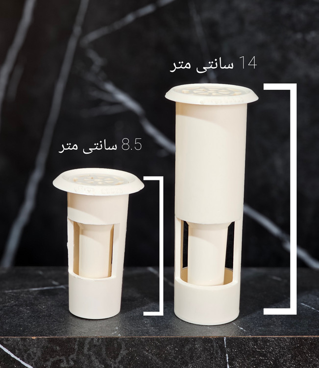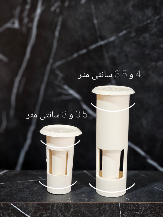 سایز بزرگ : ارتفاع 14 سانتی متر - دهانه 5.5 سانتی متر - قطر بدنه 4 و 3.5 سانتی متر - سایز کوچک : ارتفاع 8.5 سانتی متر - دهانه 5.5 سانتی متر - قطر بدنه 3 و 3.5 سانتی متر